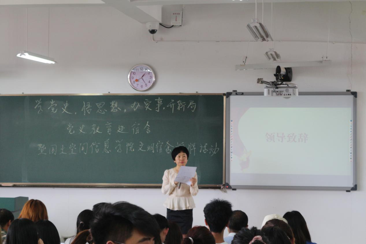 员工处处长李广涛向本次活动致辞,李老师向同学们讲述了学党史的重要性,他鼓励同学们积极学习党史,以党建带团建,创新宿舍管理制度,提高宿舍管理水平。