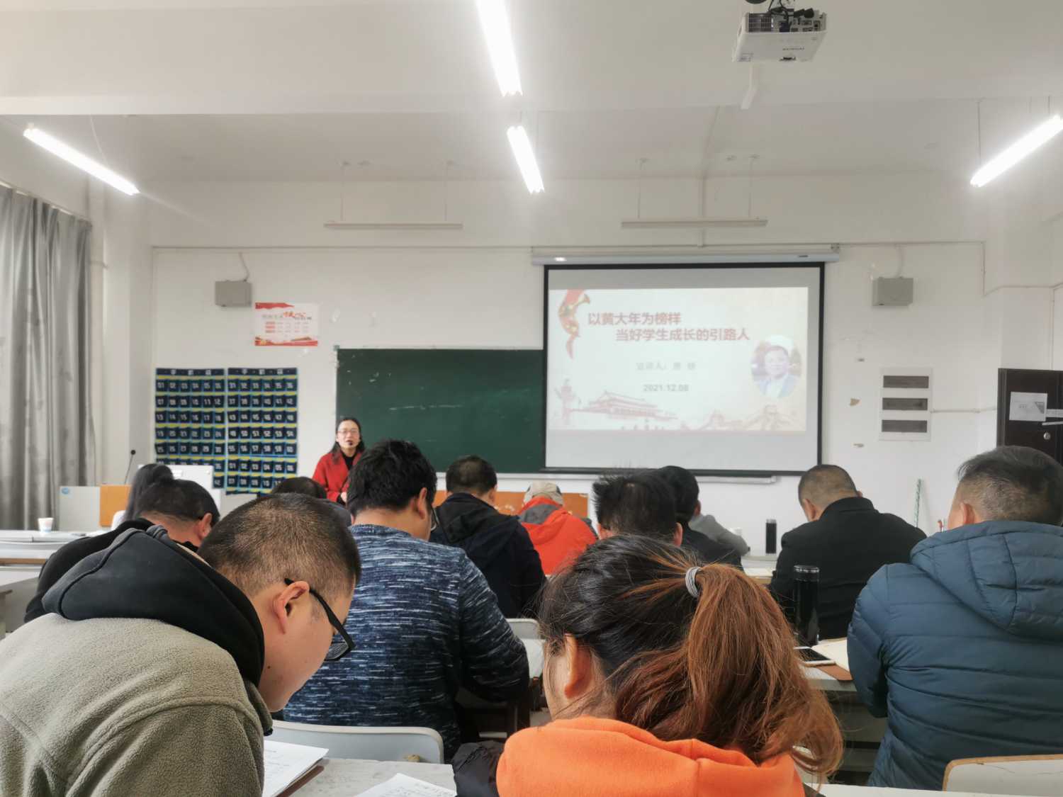 接着,唐娇老师讲授了“以黄大年为榜样 当好员工成长的引路人”。她带领老师们重温了“习近平给全国高校黄大年式教师团队代表的回信”,从“辉煌时刻回国,只因情系祖国”、“多个第一后仍争分夺秒,只为科研强国梦”、“爱生如子,培养社会主义事业的建设者和接班人”三个方面介绍了黄大年同志的先进事迹,并强调老师们要学习黄大年心有大我、至诚报国的情怀,学习黄大年的敬业精神,学习黄大年淡泊名利、一心为公的高尚情操,学习黄大年创新创造、勇攀高峰的精神,学习黄大年为党育人、为国育才的责任担当,只有这样才能当好员工成长的引路人。