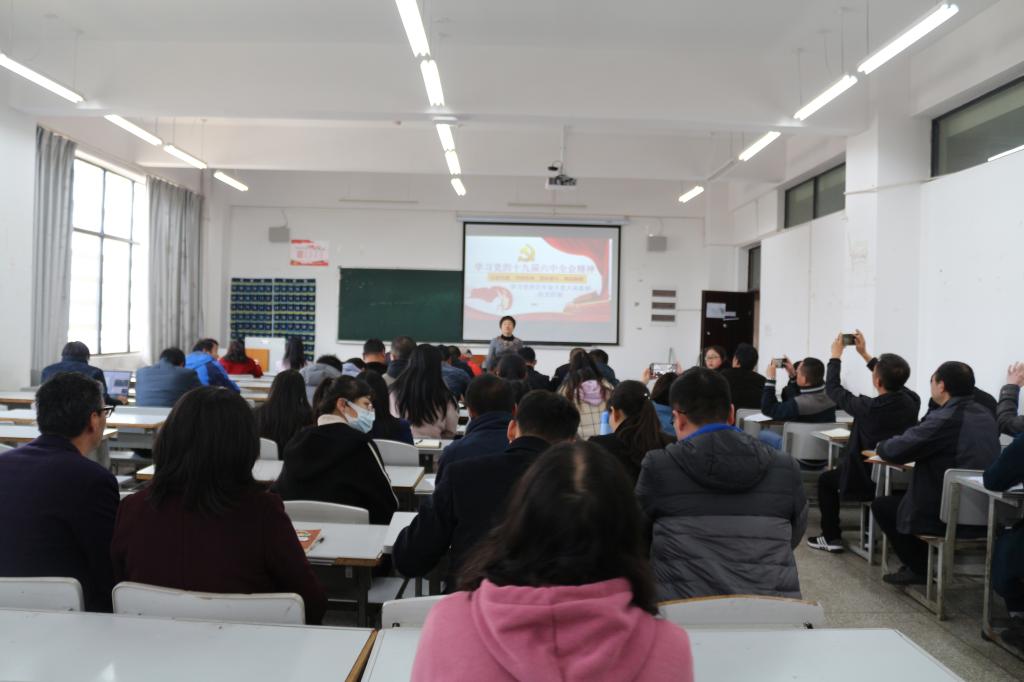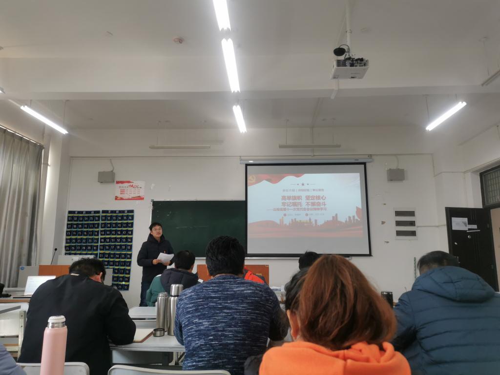随后,陈瑞平老师讲授了“高举旗帜 坚定核心 牢记嘱托 不懈奋斗——云南省第十一次党代会精神学习”。他介绍了云南省第十一次党代会的主要内容和重要意义,强调要牢记习近平总书记考察云南重要讲话精神、重要指示批示精神和党中央的决策部署,坚持6个基本原则,努力实现“7个更”的奋斗目标。在讲到作为高校教师应如何做时,他谈到高校教师要内聚于胸、锤炼忠诚、坚定信念,外化于行、锁定目标、真抓实干,紧跟时代步伐,让十九届六中全会精神、省第十一次党代会精神在课堂教学、理论研究、员工培养等方面闪闪发光。
