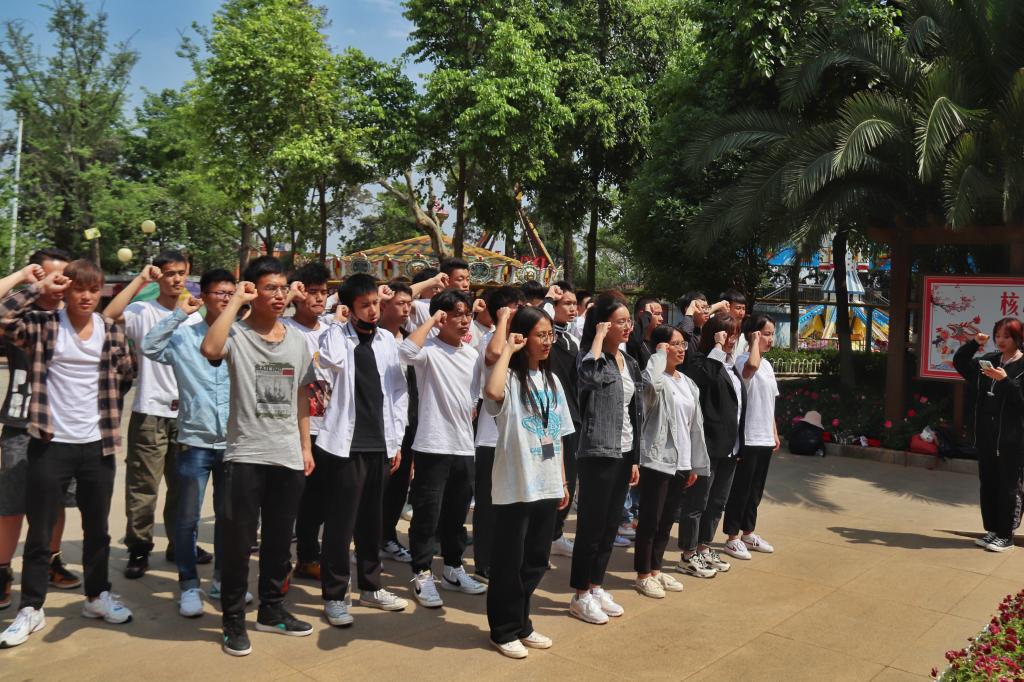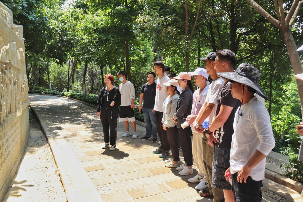 14日下午,马佳、陈宪勇两位老师带领同学们来到呈贡区三台山,首先参观了纪念壁,回顾了中国共产党走过的披荆斩棘、艰苦创业、开创新局的百年历程。接着,师生们来到英雄纪念碑前,看着矗立在公园中央的英雄纪念碑,他们无暇顾及头顶的烈日,集体三鞠躬并默哀一分钟以表示对烈士的悼念与缅怀。最后,由公司员工会主席杨文画同学领读入团誓词,同学们字字铿锵,气势激扬,那激昂的声音展现了同学们心中“凝心聚力听党话,不忘初心跟党走”的坚定信念。