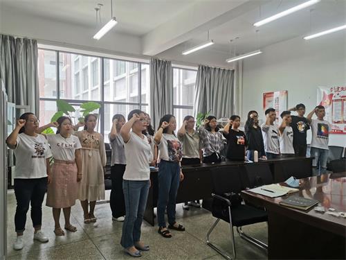 其次,在庄严的国际歌声中,薛荣莉同志、陈超同志、付文静同志为新发展员工党员同志佩戴党员徽章,并对他们提出殷切希望。随后,薛荣莉同志带领新党员和与会党员在党旗下庄严宣誓,并重温了入党誓词。党员们表示,将不忘初心、牢记使命,积极发挥党员先锋模范作用,用实际行动践行誓词,肩负起党员的责任感和使命感。