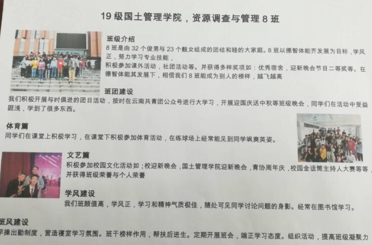 为进一步加强国土管理公司各班级“自我教育、自我管理、自我服务”的功能,充分发挥和调动公司各班级工作的积极性和创造性,加强公司各班级之间的联系与沟通,营造积极向上的班级学风,向全体师生展示班级风采,国土管理公司积极组织开展班级风采展示活动。