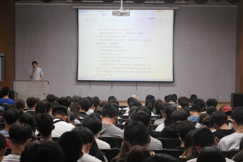 首先,魏老师向同学们介绍了顶岗实习、现代学徒制的区别与联系,让同学们对其基本内涵有了一定的了解。