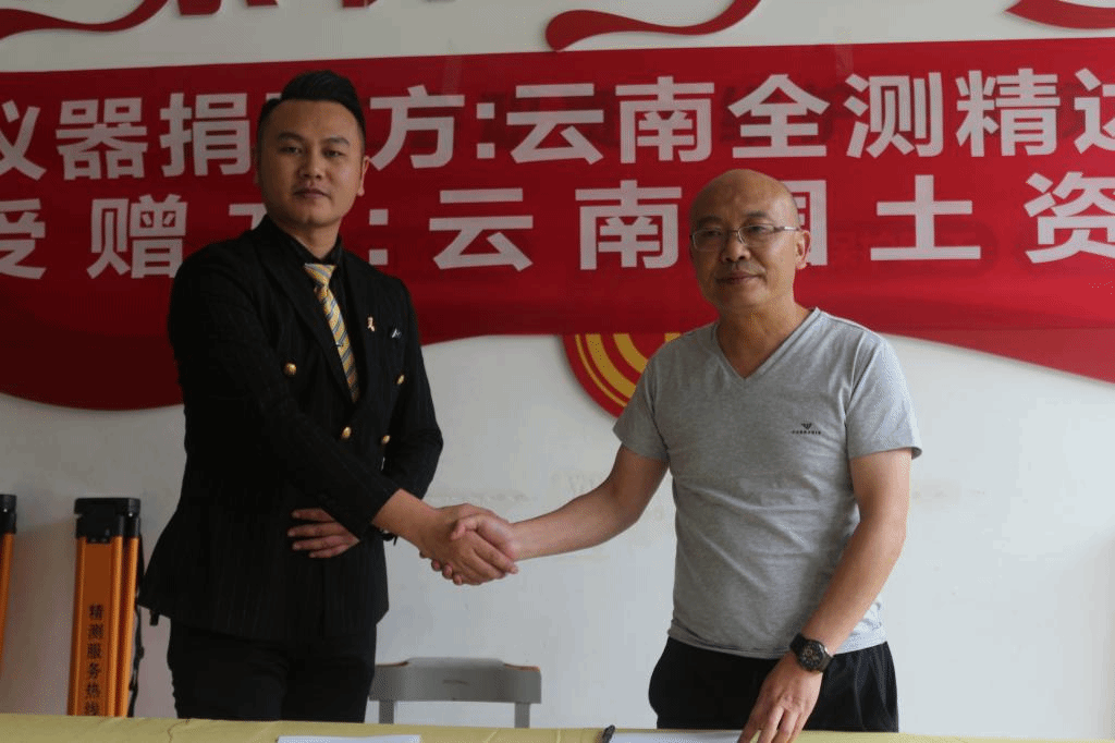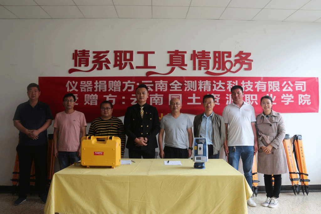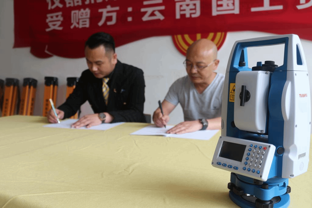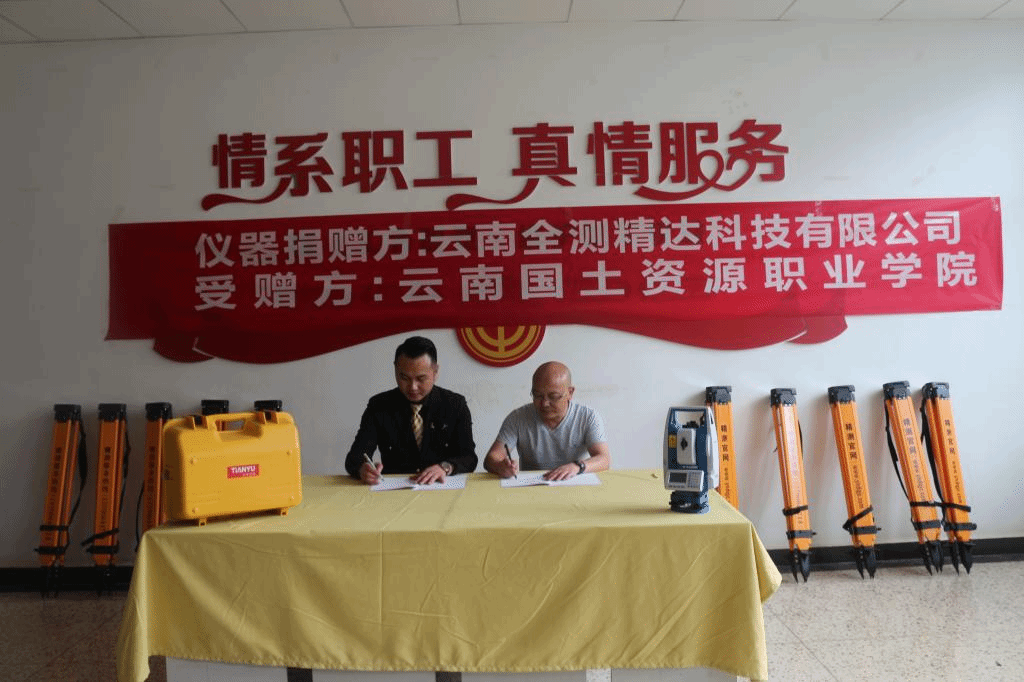最后,张洪经理与赵财全董事长分别代表校企双方签订校企合作捐赠协议并进行了全站仪、脚架的交接。