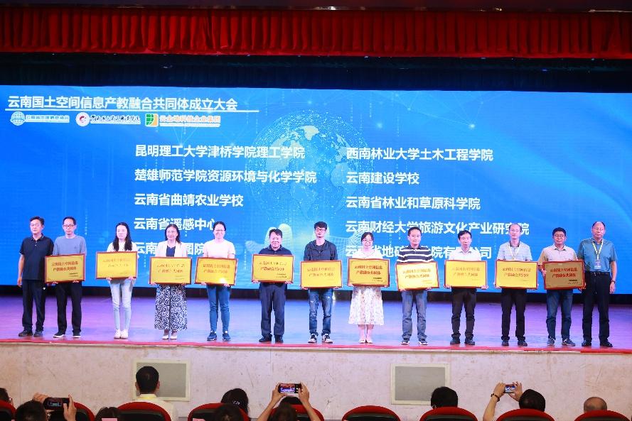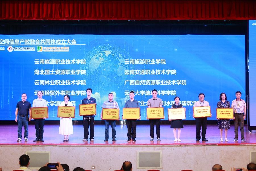 寸建平副董事长宣读了云南国土空间信息产教融合共同体首批成员92家单位名单。宣读结束后,与会领导为云南国土空间信息产教融合共同体成员单位授牌。