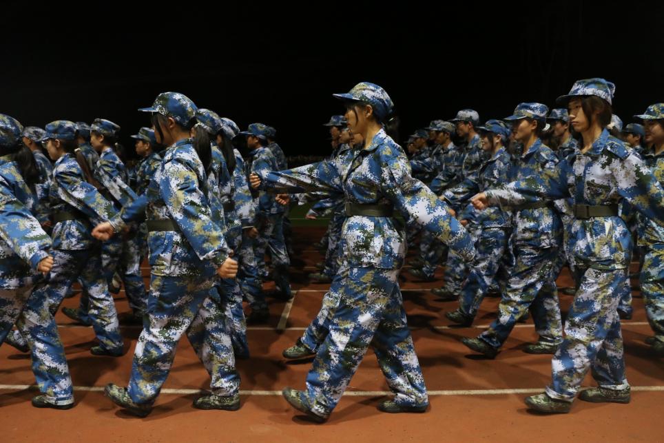 迎着清晨的阳光和微风,同学们开始了他们军训的一天,这是他们老员工涯的第一次集体考验,也是磨砺意志的开始。