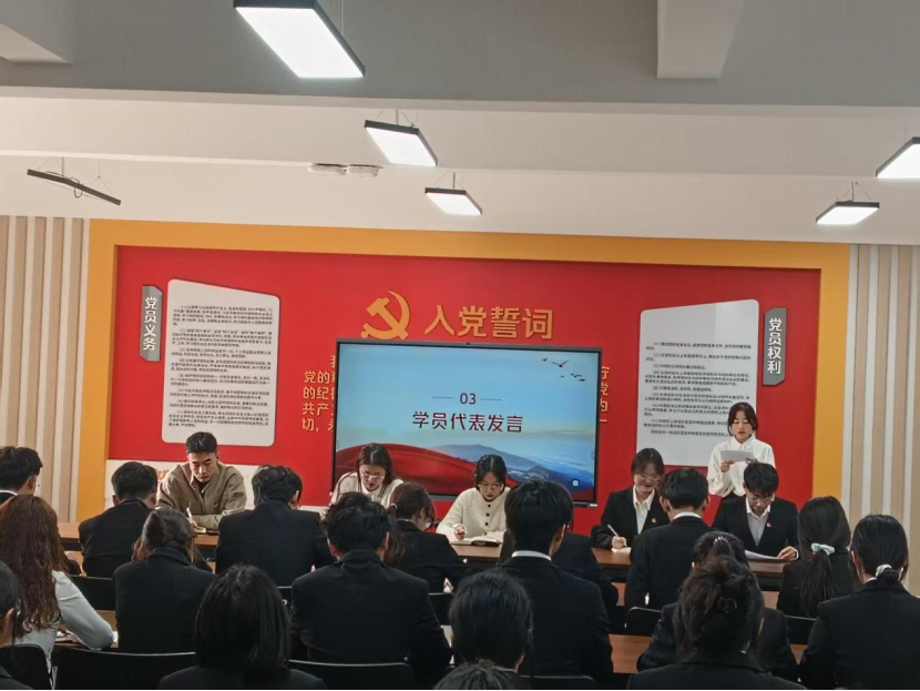活动过程中,公司团总支书记孙嘉蔚在致辞中对参与本期培训的学员们致以诚挚的祝贺。紧接着,2025级国土资源调查与管理专业陈菊同学作为新学员代表发言。在发言中他表示,全体学员应该以“求知若渴”的态度筑牢思想根基,以“脚踏实地”的行动锤炼过硬本领,以“严于律己”的自觉树立青马形象。
