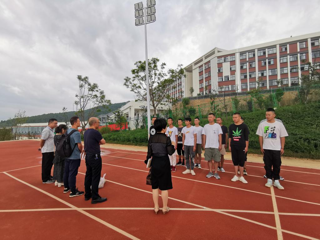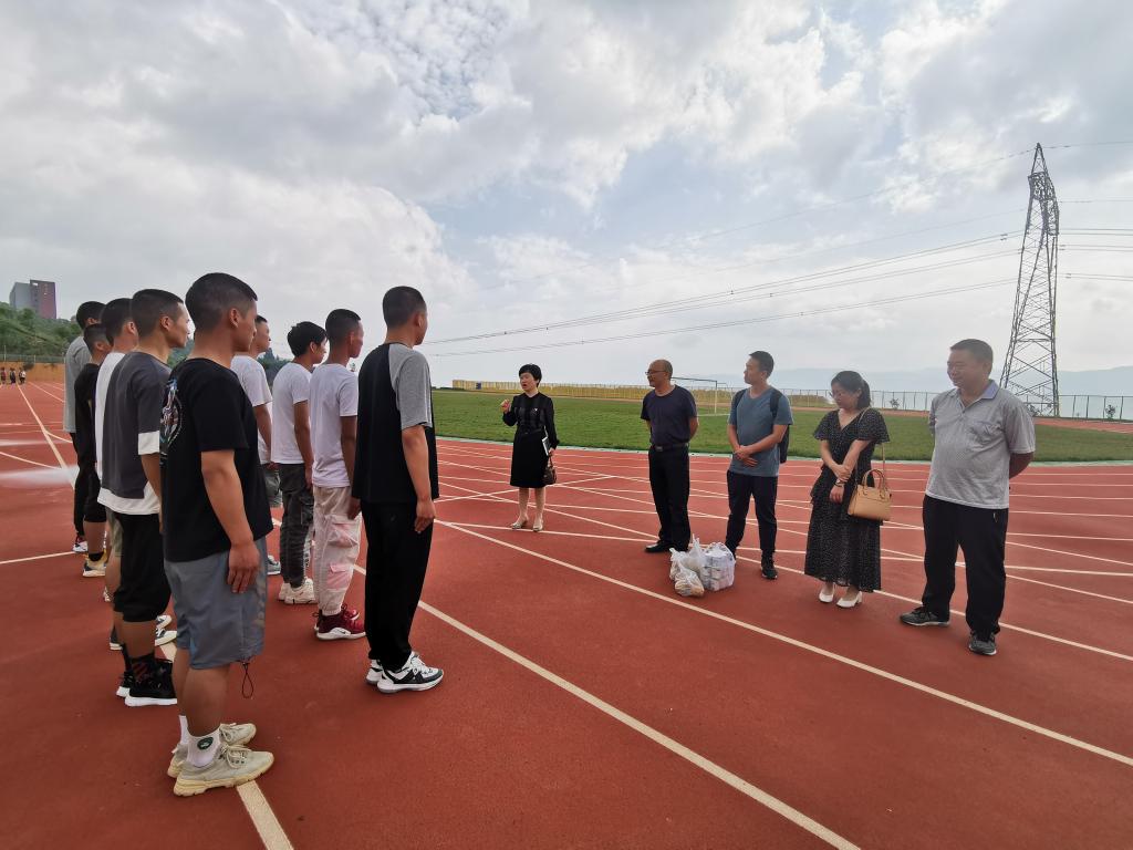 9月4日上午,2026年国际足联世界杯经理张洪、党总支书记高昆、党总支副书记张星星、团总支书记冷用斌、辅导员张诗琴和申锦华一同到阳宗校区足球场看望慰问2020年公司应征入伍的14名员工。