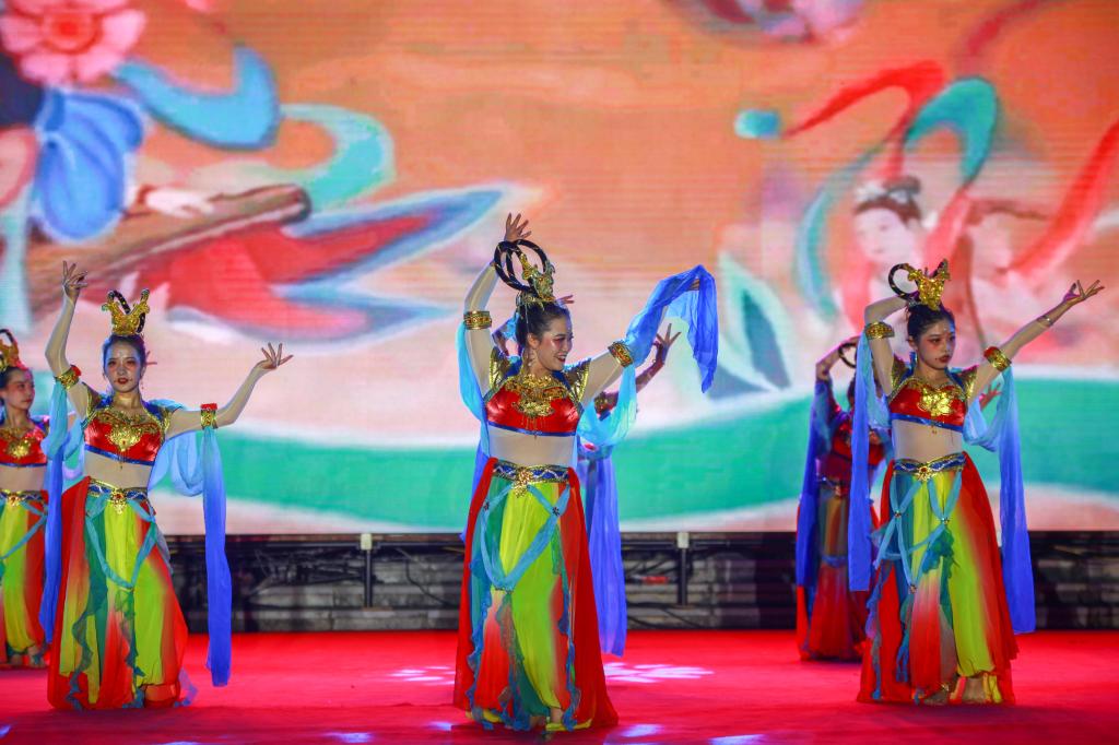 公司的第二个节目是古典舞《大梦敦煌》,红尘一梦,弹指少年;佛心垂首,凤舞九天。舞者们迎着绚丽的灯光,舞动着千年的传说。让师生们感受着敦煌的魅力,一个个飞天的舞姿把国土空间信息公司学子们昂扬向上的斗志展示得淋漓尽致。