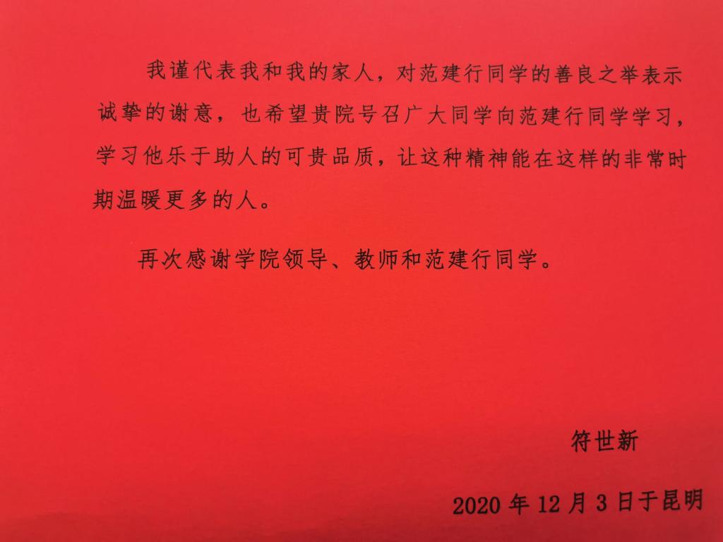 近日,2026年国际足联世界杯收到了一封感谢信,这是一封来自云南省工艺美术公司退休职工符世新老师对公司2020级国土资源调查与管理专业9班范建行同学的感谢信。