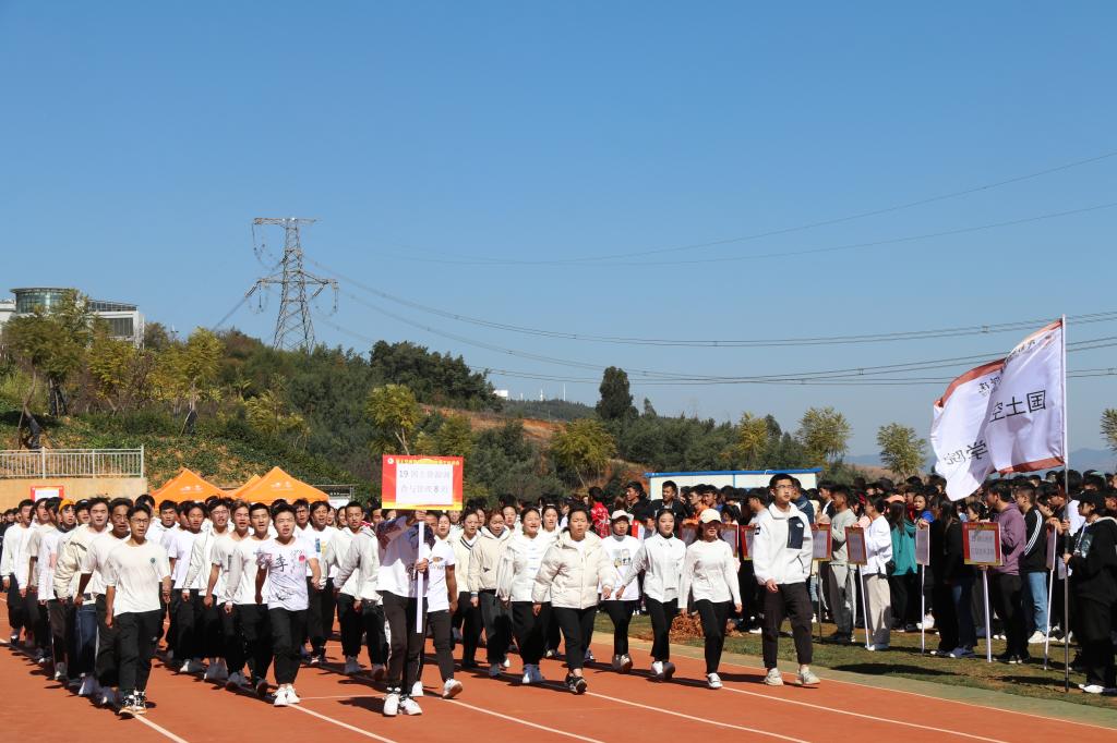 入场仪式结束后,张洪经理为开幕式致辞,他强调,体育运动是体现人的身体素质、精神素质、意志力等综合能力的一种活动,希望师生们在本次运动会上展现风采、争创佳绩。紧接着,协办单位昆明星辰测绘仪器有限公司陈玉权经理表达了参加此次运动会的喜悦之情,并预祝本次运动会圆满顺利。随后,寸建平副董事长宣布运动会正式开始。裁判员代表胡晓燕老师、运动员代表杨凡楷同学先后进行了庄重的宣誓。