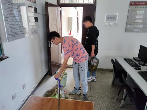 活动当天,同学们分组对勘物楼B区教学楼各教室进行卫生打扫,大家分工明确、行动有序,重点清理了教室地面、黑板、桌椅抽屉和机柜。在大家的辛勤劳动下,各教室亮洁如新。