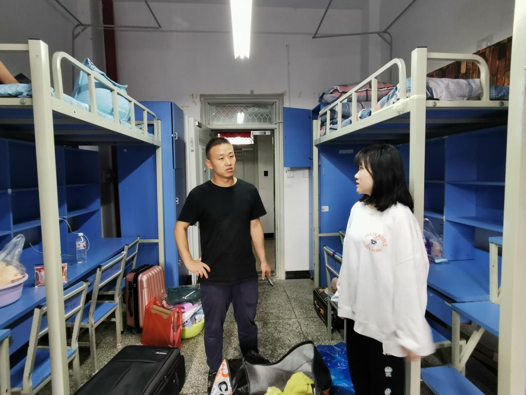 26日上午,党委书记牛定柱、董事长陈颖、副董事长寸建平亲临公司迎新点检查、指导工作,问询了迎新工作的开展情况,并对志愿者们给予鼓励。在老师们、同学们的紧密配合下,整个迎新工作进行得井井有条。26日下午6点,在空信公司党总支书记高昆的带领下,公司新生辅导员、班主任分组走访新生宿舍,他们与新生亲切交谈,了解入住情况,向同学们解答疑惑,同时叮嘱新生要保管好个人财物等安全事项。