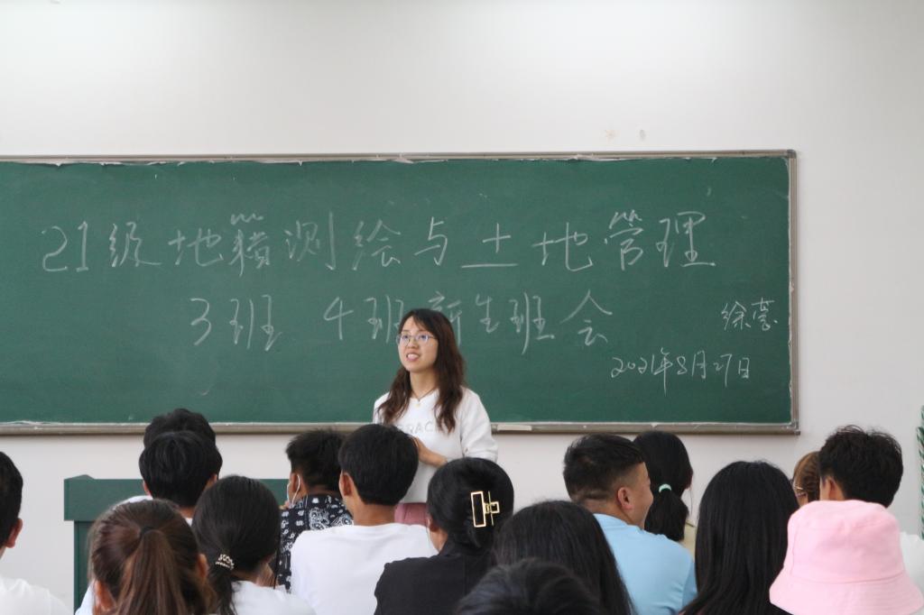 8月27日下午四点始,空信公司21级班主任陆续在勘物楼B区、崇实楼4-5楼召开新生主题班会,班主任们给新生讲解了入学教育相关事项,并讲述了自己对新班级的愿景及同学们的要求。