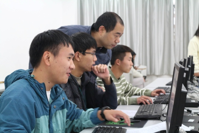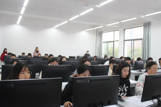 紧接着,竞赛正式开始,参赛选手们或凝神细思,或急敲键盘,他们心无旁骛,在电脑上争分夺秒却又有条不紊。在场的老师们密切关注选手们竞赛情况,耐心帮他们解决竞赛过程中遇到的问题。在选手们不断跳跃的键盘声中,竞赛慢慢临近尾声。选手们作答完毕后,现场负责老师逐一认真检查提交成果,确保提交成功,方能离开考场。待所有选手提交成果后,评委老师们将严格按照评分标准,遵循公平公正原则,对各成果进行打分。