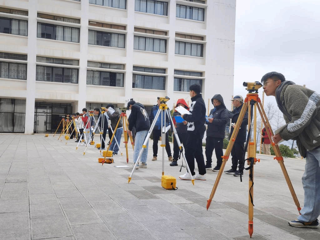 理论考试结束后,同学们来到国土广场进行实操考试。纵然天气寒冷,但同学们丝毫不受影响,只见他们动作娴熟,精准计算,用复杂的公式将采集到的数据计算出准确的数值来,展现了最佳的操作水平和考试状态。