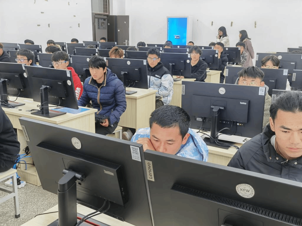 上午9时,在公司老师们的组织下,30名同学在勘B214机房进行了理论考试,考试过程中,同学们个个精神饱满,他们聚精会神地盯着电脑屏幕,手指点击着鼠标,在电脑上答出自己这段时间以来努力的成果。