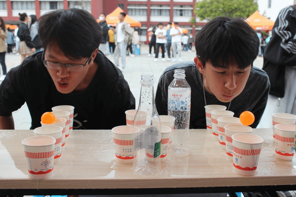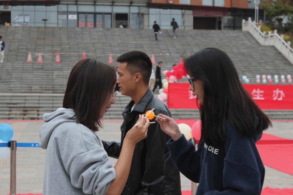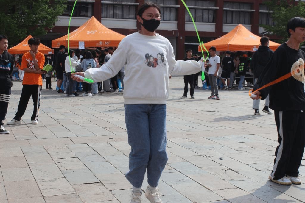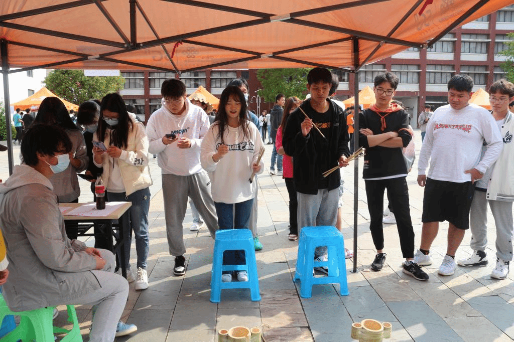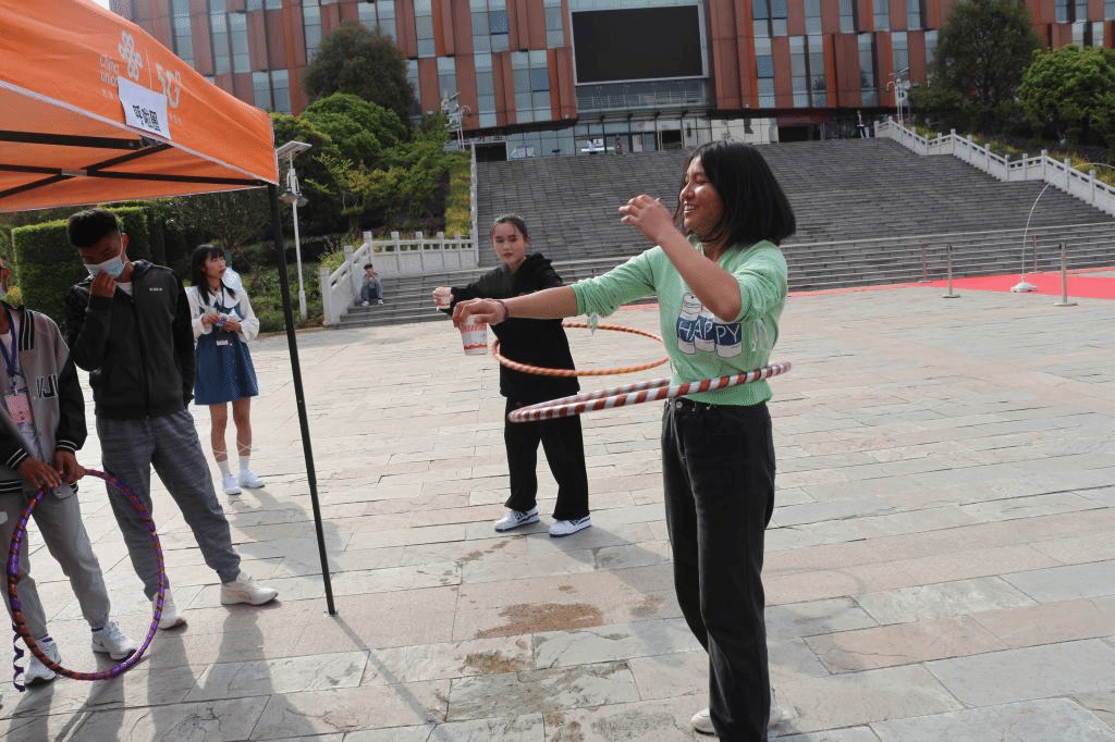 另外,还有考验耐力的“呼啦圈”、“步步为营”、“个人跳绳”,文字游戏“正话反说”,考验团队协作的“球球大作战”、“衣服接龙”、“桃花朵朵开”,极具挑战性的“我心飞翔”、“蒙眼大战”、“投壶”、“小球上筷”、“嗨歌比拼”、“大象踩气球”、“一站到底”等游戏。参与的同学顺利完成游戏即可获得兑奖券,集够一定数量的兑奖券还可兑换零食、生活用品、电子产品等。新颖有趣的游戏以及丰富的奖品让同学们乐此不疲地四处挑战,活动现场气氛热闹欢快。