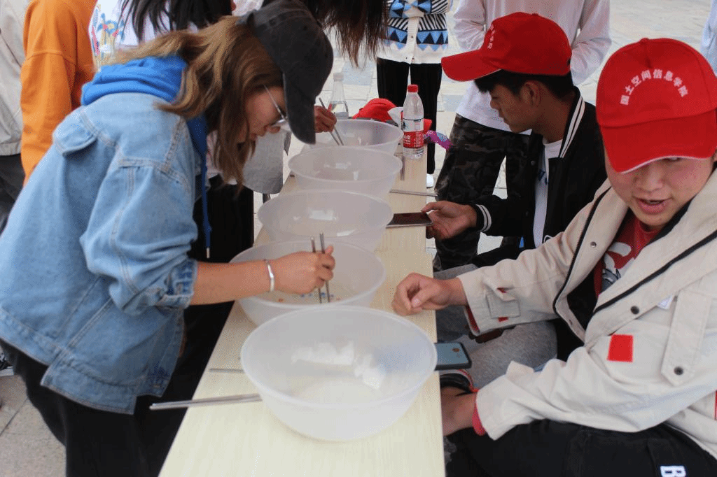 春风和煦,阳光灿烂,伴着这美好的天气,空信公司2022年清明节游园活动在国土广场准时开始啦。此次游园活动内容丰富,形式多样,同学们的参与积极性极高,各个游戏摊位前熙熙攘攘,甚至排起了长队。“蒙眼大战”吸引了好多同学加入,两两一组分别戴上眼罩,每人拿着柔软的海绵棒敲击对方,同学们身手敏捷,赢得了现场观众的阵阵欢呼。参与“小球上筷”的同学们小心翼翼地用筷子夹着乒乓球,挪着小碎步,然后将球传给另一位同学,现场紧张的氛围让观众也不由得屏住呼吸,默默为参赛者们加油。每一个看似简单的活动,都是对同学们合作能力、思维转换等的大考验。