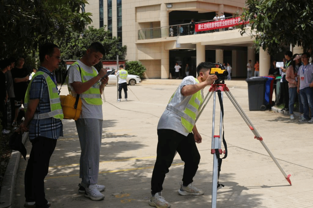 比赛现场,选手们沉着应对、团结协作,充分展现了自身娴熟的专业技能与奋发向上的精神风貌。他们全神贯注地操作着仪器,认真记录、计算、复核每一项测量数据。比赛当日烈日炎炎,他们丝毫不受影响,用不懈的坚持践行不怕吃苦、精益求精的工匠精神。比赛现场也是战场,勇敢的测绘人把手中的仪器设备当作利器,把精益求精的态度当作冲锋的号角,在测量中大展身手、勇攀高峰。