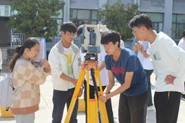 本次比赛以小组为单位进行竞赛考核,每小组四个成员轮流进行全站仪的安置接力,裁判老师严格按照职业技能竞赛和行业规范的考核标准进行评判,用时最短的小组获胜。