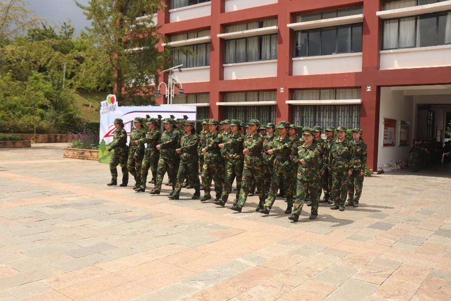 青春似火军歌嘹亮,青年意气百炼成钢。铿锵有力的口号,整齐划一的动作,成为了校园里一道亮丽的风景线。
