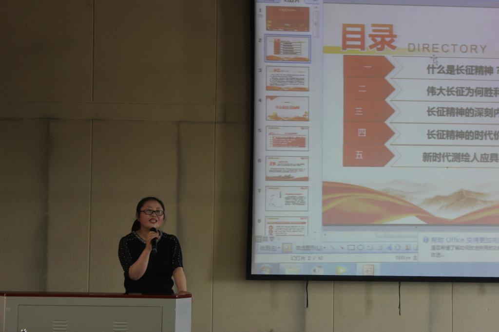 4月22日,公司针对19级员工进行了三场党史专题讲座,主讲人分别是申锦华、王军芳、袁锋三位老师。此次讲座的主题为“长征精神与测绘人”,将长征精神与公司测绘相关专业充分结合在一起,启发同学们思考测绘人的精神品质,引导他们更清晰地认知所学专业,进而做好人生职业规划。另外,讲座上,老师们还向同学们推荐了反映测绘人工作生活的文学影视作品,希望同学们能够继承和弘扬长征精神,做一个不怕苦、能吃苦、勇拼搏的测绘人。