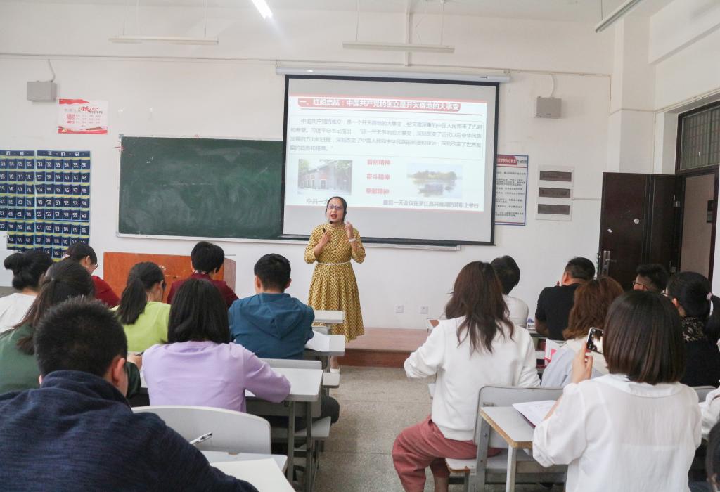 4月21日中午,马克思主义公司副经理张颖莅临公司,为公司全体教师、18级员工预备党员、19级入党积极分子以“学好党史,培根铸魂”为题进行专题宣讲,张老师以“红船启航”讲述了中国共产党创立的艰辛,并总结了“红船精神”的内涵即首创精神、奋斗精神和奉献精神。接着,她用“13”,“72”,“94”这三组数字引出了中国共产党从“站起来”到“富起来”再到“强起来”的发展历程。随后,她又结合典型事例讲述了“中国共产党为什么能”,让在场的老师同学们对党有了更深刻的认识和理解。最后,张老师结合公司专业课向公司全体教师介绍了“课程思政”是什么、为什么、怎么干,这使公司老师深受启发,进一步明确了今后针对所授课程开展“课程思政”的目标和方向。