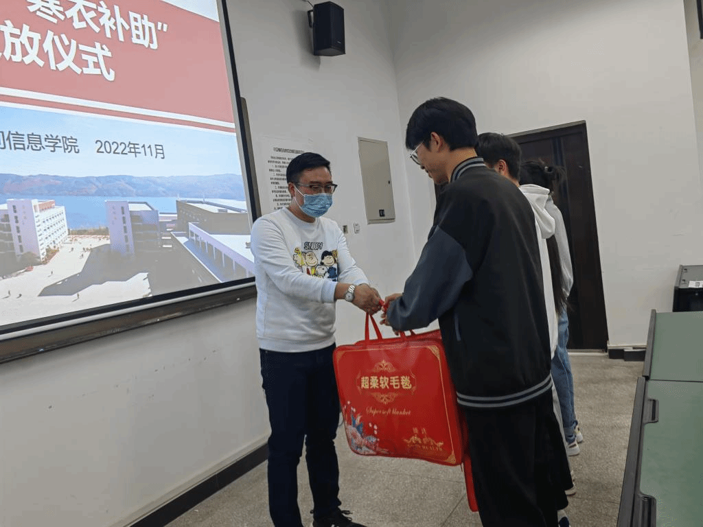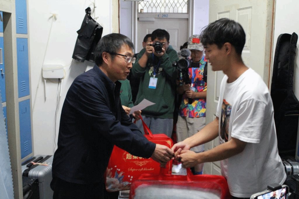 11月14日下午,公司党委书记牛定柱,公司党总支书记高昆及22级辅导员一同来到绘水苑6栋、7栋宿舍,将寒衣(毛毯)交到受助同学手上,与同学们亲切交谈,了解员工们的学习和生活情况。在交谈中,牛书记勉励受助同学要常怀感恩之心,努力学习,自立自强,将来为公司和社会做贡献。