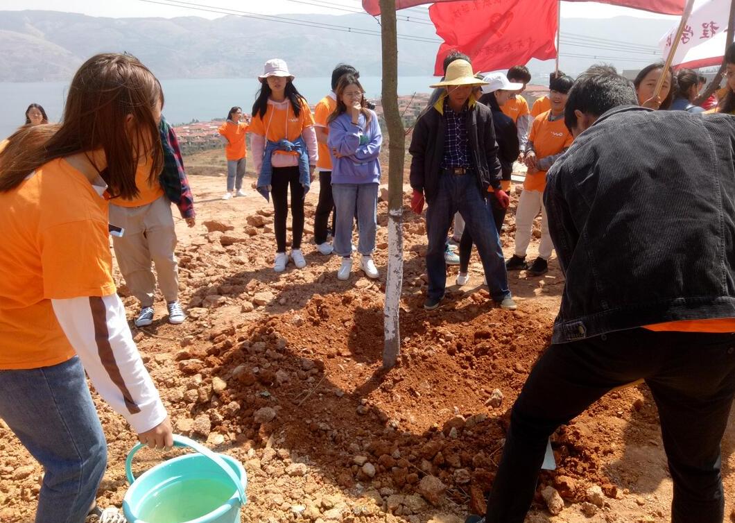 中午时分,各公司队伍集合完毕后,活动正式开始,校领导的精彩致词使同学们受益匪浅,深刻理解了本次活动开展的意义。紧接着,植树活动过程中,老师和同学们积极参与,有序地加入了植树的行列,手持铁锹和水桶,将一棵棵树苗植入土中并浇好水。现场气氛活跃,师生们纷纷合影留念。