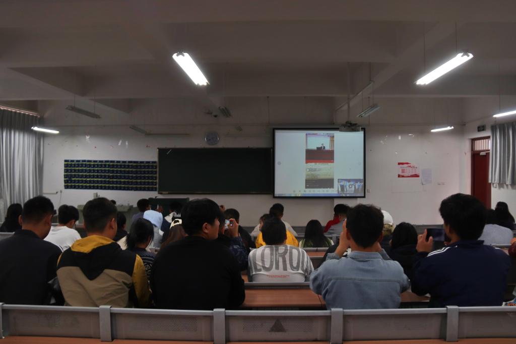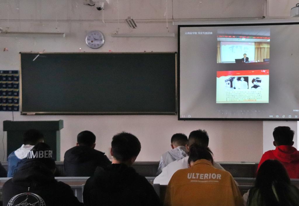 下午14时直播准时开始,同学们整齐地坐在教室里观看直播。本次线上直播的主讲人是来自云南省委党史研究室的杨林兴副主任,杨老师以“中国共产党百年光辉历程与宝贵经验”为主题,依次讲解了“认真学习领会习近平总书记关于党史的重要论述精神”、“中国共产党的百年光辉历程及怎样认识中国共产党的伟大成就”、“正确认识中国共产党百年历史的主流和本质”、“中国共产党百年历史宝贵经验”四个方面的内容。杨老师强调,当代青年要树立正确的党史观,要全身心地投入到党史学习教育中,以求真求实的态度,学出信念、学出干劲、学出担当。