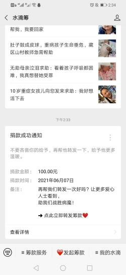 倡议发出后,公司师生纷纷伸出援助之手,慷慨解囊。公司各党支部、各班级积极组织捐款,师生们把捐款打到对应“水滴筹”的求助账户上,并通过微信QQ转发“水滴筹”的求助链接,让爱心继续传递。涓滴之水汇成海洋,颗颗爱心变希望,公司广大师生用赤诚之心为遇到困难的两位同学点亮了一盏希望之灯。