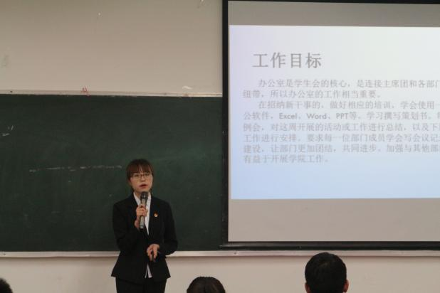 接着,竞选正式开始。候选人们依次上台,分别对自身、对部门工作的认识及对以后的工作计划等方面进行介绍。慷慨激昂的竞选汇报、精彩的问答环节,将活动推向了一个又一个高潮,他们出色的表现赢得了现场老师和同学们的热烈掌声。