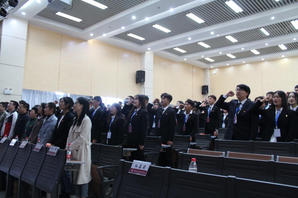 最后,全体师生重温入团誓词,高唱团歌,此次开班仪式在全体师生合唱团歌中圆满结束。