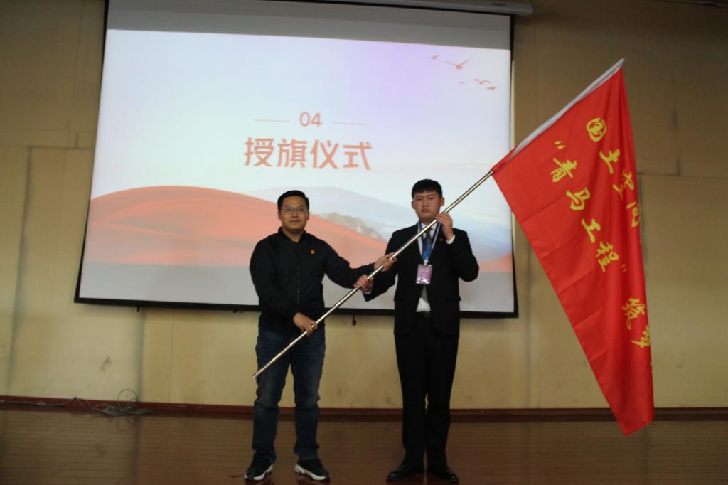 紧接着,公司团总支负责人马佳将班旗授予公司团总支副书记龙在闯。