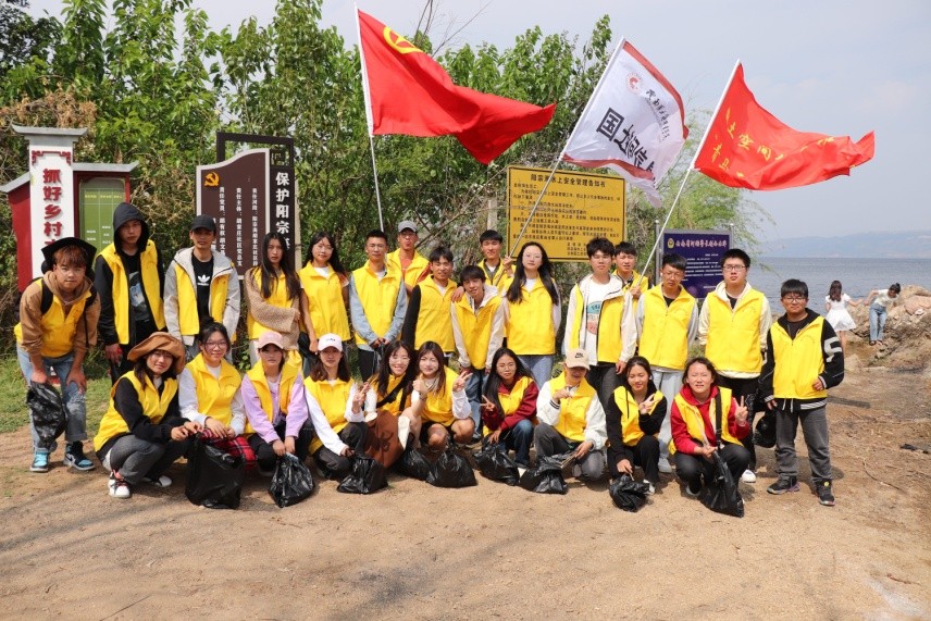 活动当天,虽然天气很炎热,阳光很刺眼,但却挡不住士气高涨的同学们,他们充分发扬一不怕脏、二不怕苦、三不怕累的志愿服务精神,顶着烈日就忙碌了起来。他们徒步前行,徒手捡拾路边、草丛中的垃圾以及湖边废弃的渔网,湖畔随处可见身着黄色马甲同学们的身影。
