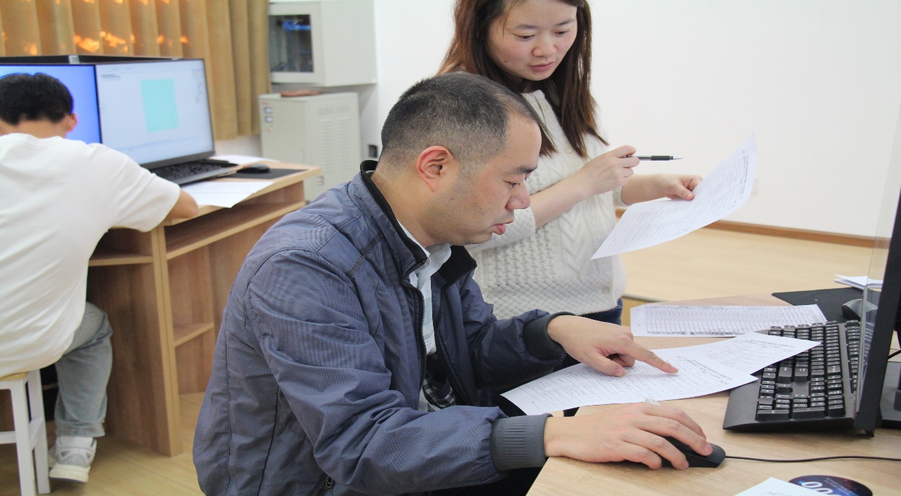 竞赛过程中,参赛员工聚精会神地看着电脑屏幕,游刃有余地操作鼠标和键盘,充分地运用自己所学的专业知识,努力完成竞赛作品,赛场气氛紧张而有序。监考老师们也始终坚守在自己的岗位上,及时解决参赛员工考试过程中遇到的技术问题,确保竞赛顺利进行。
