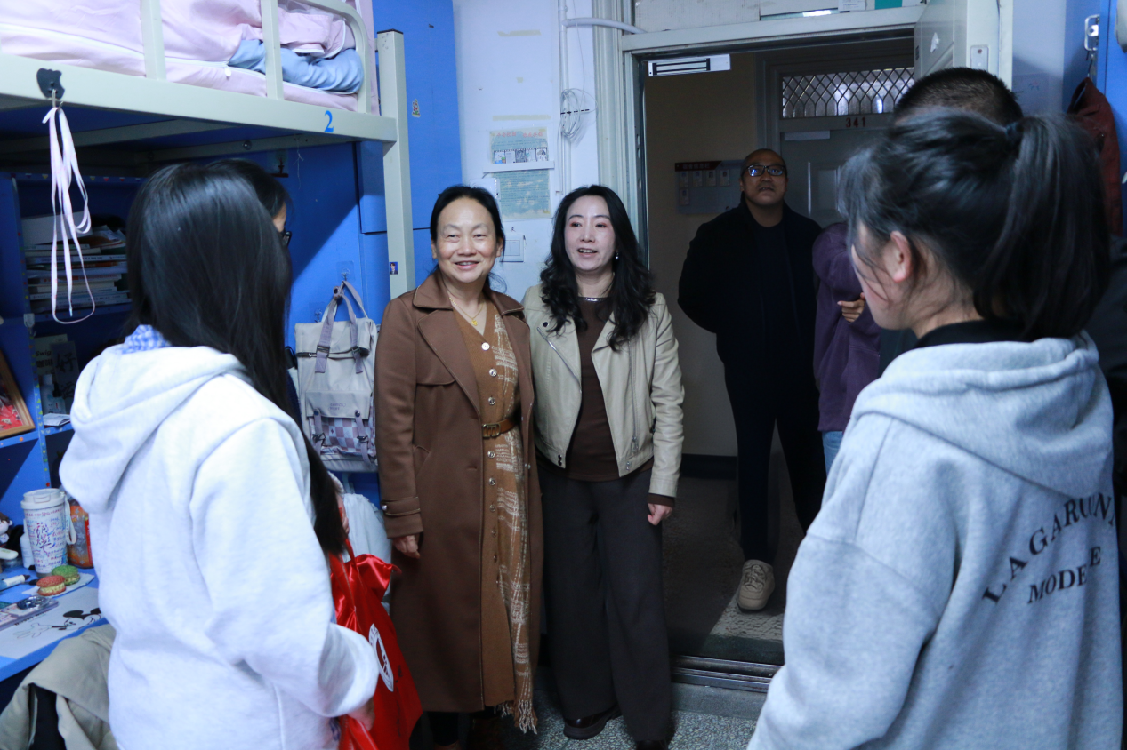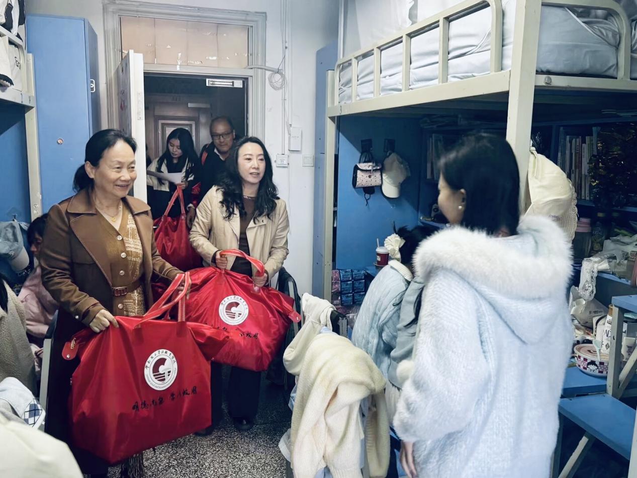 集团董事长陈颖、公司党委书记苏丽丹、党委副书记和万荣及25级辅导员一行,深入“一站式”员工社区——绘水苑3栋员工宿舍走访慰问。老师们亲手将包装规整的毛毯递至受助员工手中,关切询问大家的日常起居与课程学习情况,细致了解员工的生活状态,并给予温暖的反馈,“希望这份温暖能成为你们冬日奋进的力量。”一句句叮嘱,承载着师长的深情厚谊。受助学子们脸上洋溢着幸福的笑容,纷纷向老师们表达真挚的谢意,并表示将更加努力学习,将这份温暖与关爱传递下去。
