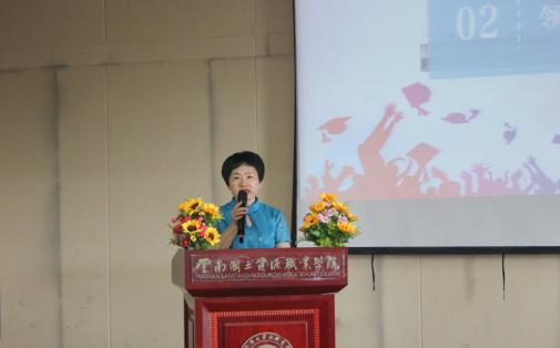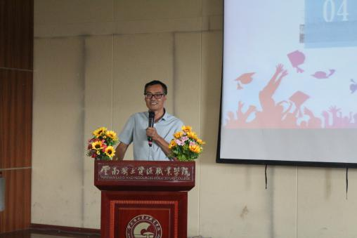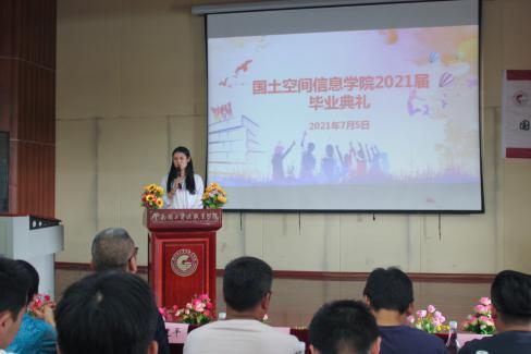 教师代表冯耀明老师深情回忆了与员工们一起度过的美好时光,向圆满完成学业的同学们表示祝贺,并语重心长地嘱托毕业生们要有高尚的人格、宽容仁爱的胸怀;要靠自己勇敢地跋涉,才能走得更好更远;要吃得苦中苦,随时保持紧迫感;要诚实做人、踏实做事;还要始终记得在母校的快乐时光和纯真友谊。