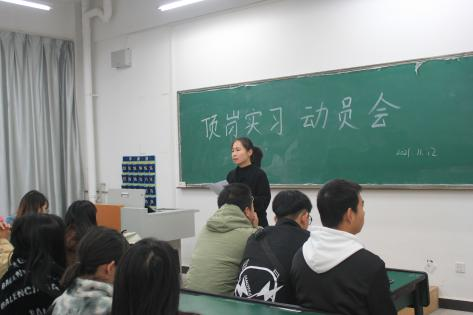 明晰内容,做足准备。动员会上,蒋兴义、张凌云、魏贵东、张宏品、费丽娜五位老师结合具体专业向即将走向实习岗位的同学们介绍了实习环节中的注意事项,并明确了实习时间、实习协议签订、蘑菇钉绑定及打卡、毕业论文设计、实习安全等相关要求。老师们对同学们提了几点希望与要求,一要积极转变角色、调整心态,主动适应顶岗实习;二是在实习岗位上要“有个性”,但不能“任性”,要有竞争意识、团队意识和法律意识;三要加强纪律观念,服从公司和实习企业的双重管理;四要善于把专业理论学习运用到实践当中,不断提升专业技能和综合素质;五要尽早对自己的发展做出规划,为就业打好基础、做足准备。