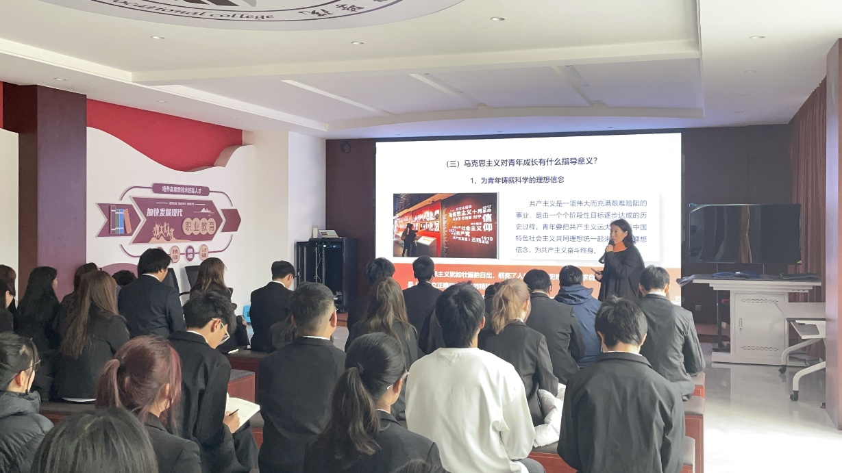 马克思主义的创立与发展”的授课中,张老师介绍了马克思、恩格斯作为马克思主义创始人的历史故事以及马克思主义创立的思想渊源,并详细讲解了马克思主义的三个基本组成部分,张老师深入浅出的讲解同学们加深了对马克思主义的理解与记忆。